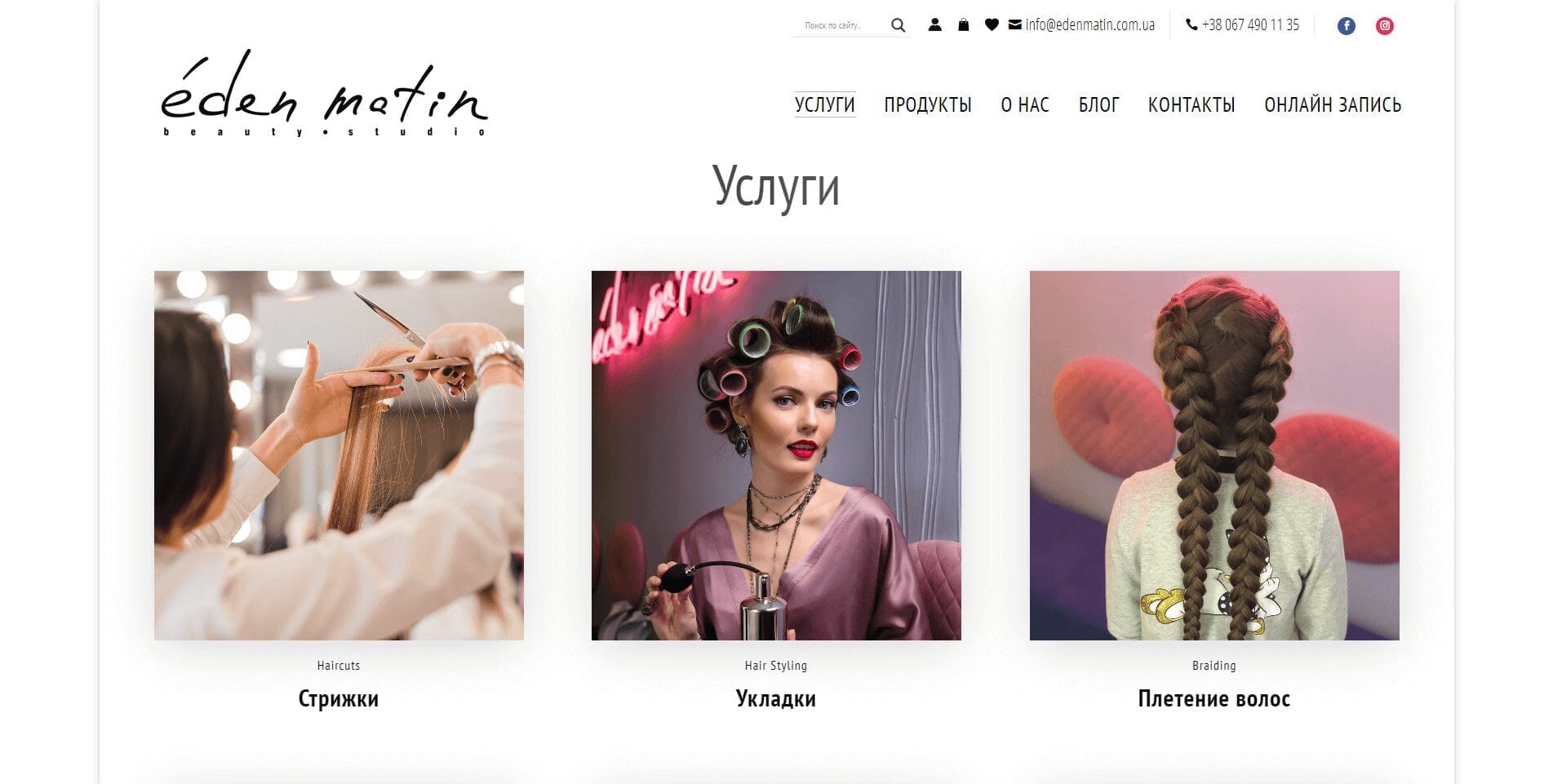 Досконалий, розкішний та інтуїтивно зрозумілий веб-дизайн, що відповідає фірмовому стилю Eden Matin
